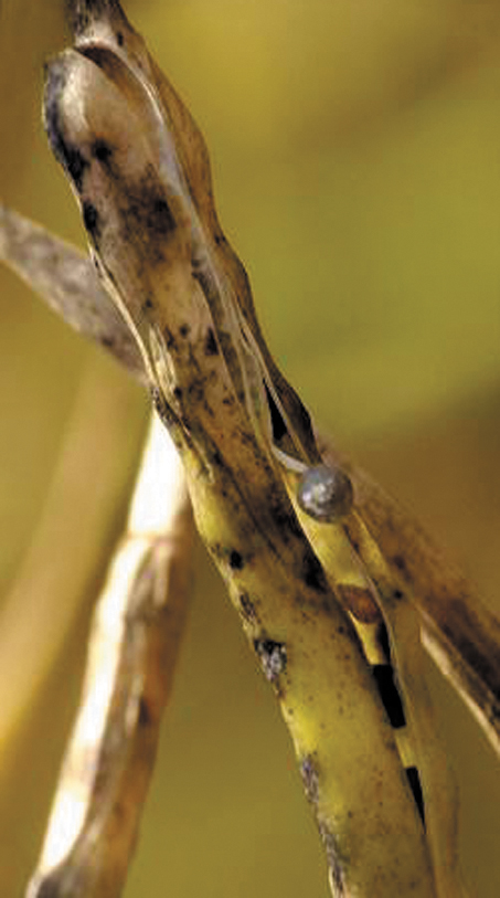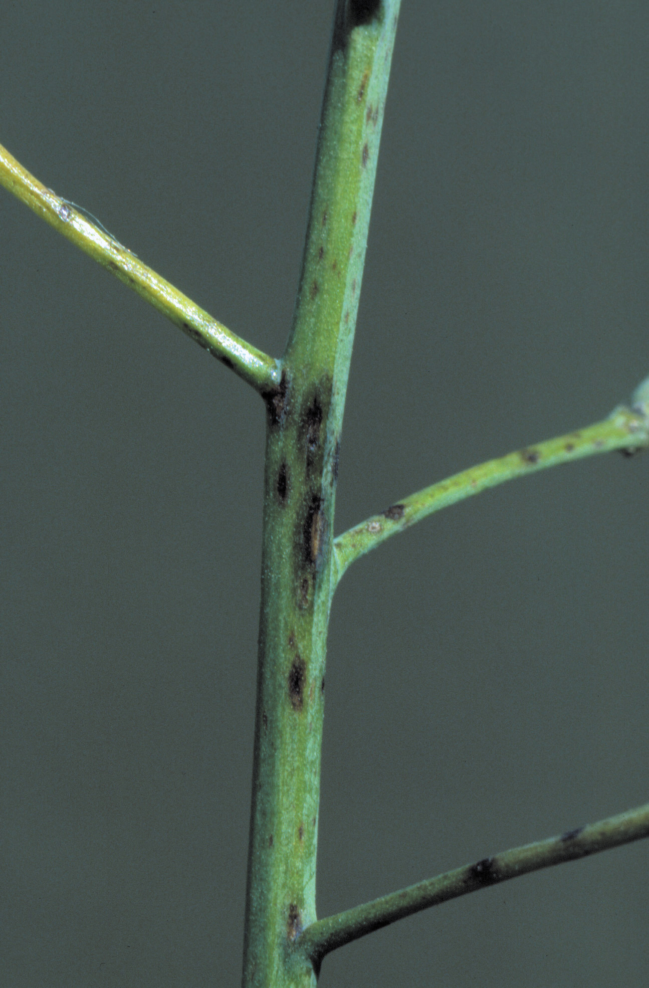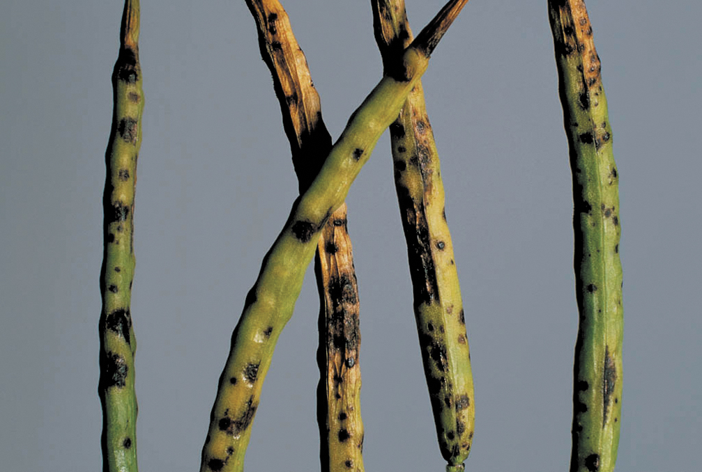 На стручках пятна тёмные, мелкие, блестящие. При раннем проявлении заболевания